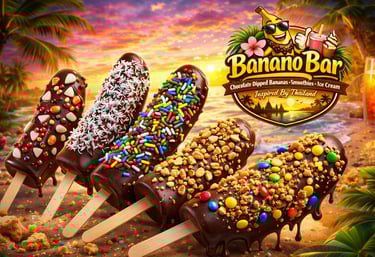 Banano Bar brings the vibrant flavors of Thailand to your day with chocolate-dipped bananas, smoothies, and more.